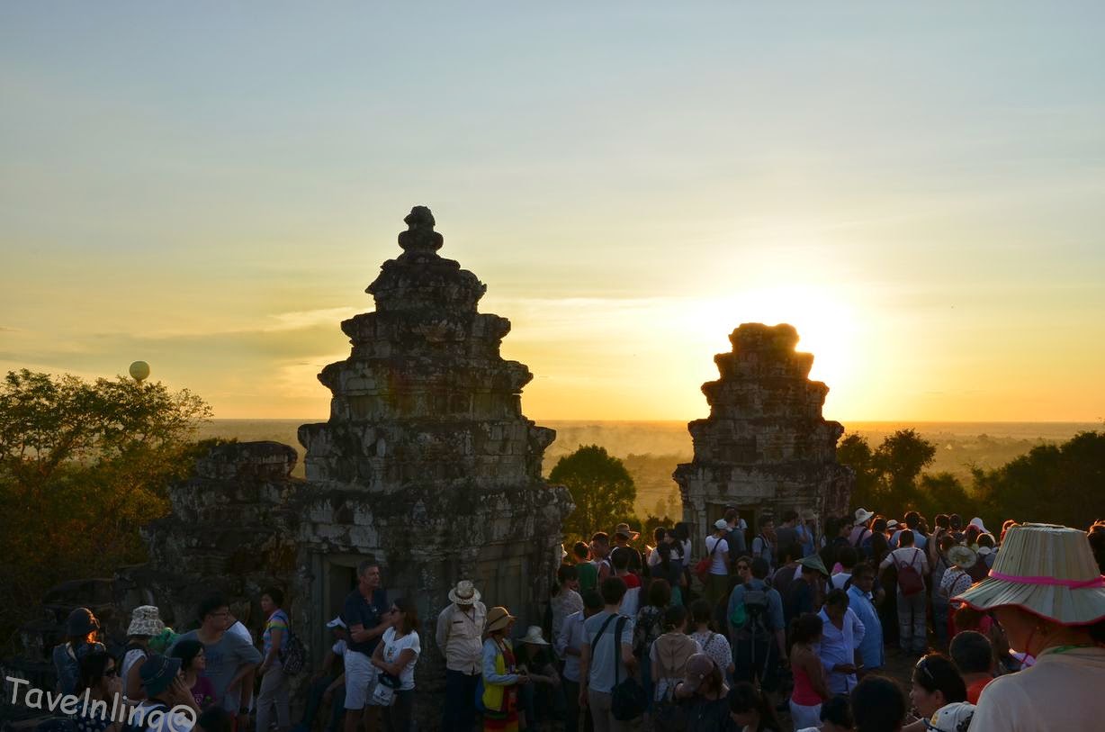 到巴肯山看日落幾乎是吳哥窟必看遊景點之一,也因為如此,看夕陽的人簡直多的可怕!巴肯山標高65公尺,在這一區平坦的地勢上算是高的。