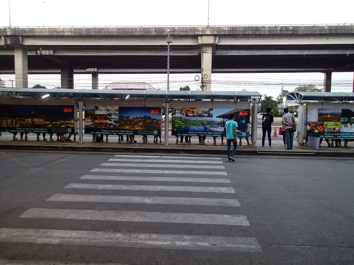 這天先是搭了一整天的巴士從素可泰到曼谷的長途巴士北站「Mo Chit」,然後緊接著搭公車16號到長途巴士站南站「Sai Tai」。公車因為由北站總站出發,所以一開始很空,殊不知沒多久馬上擠得像沙丁魚罐頭!