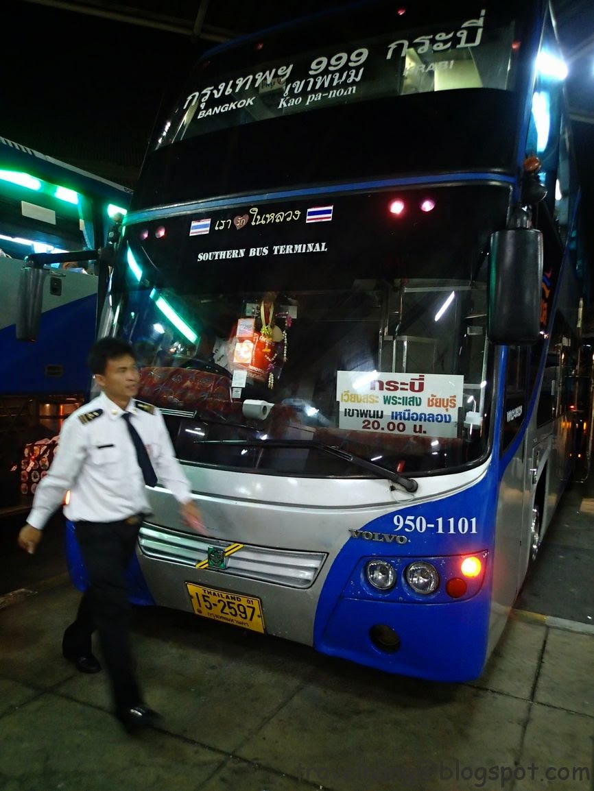 - 巴士:曼谷長途巴士站南站有販賣從曼谷往泰國南部的車票,包含到蘇美島及喀比等地,直達喀比的票有分VIP車及普通車,VIP車內是32座,普通車是50人座,皆有空調、設洗手間、附簡餐,主要是車內座椅空間舒適度的差別。