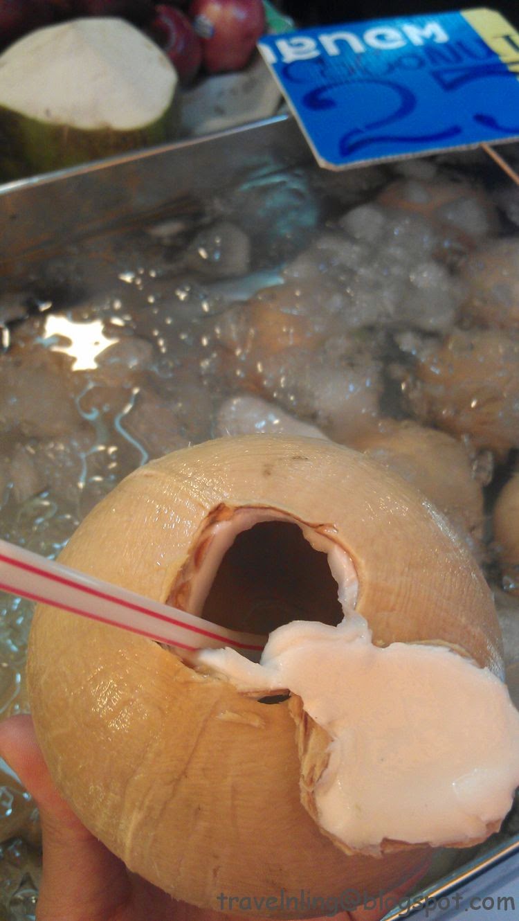 這個只有巴掌大的小椰子裡,意外地裝著飽滿的天然椰子汁,冰冰涼涼的,非常消暑好喝!我在離開前一天才嚐試,有點相見恨晚!