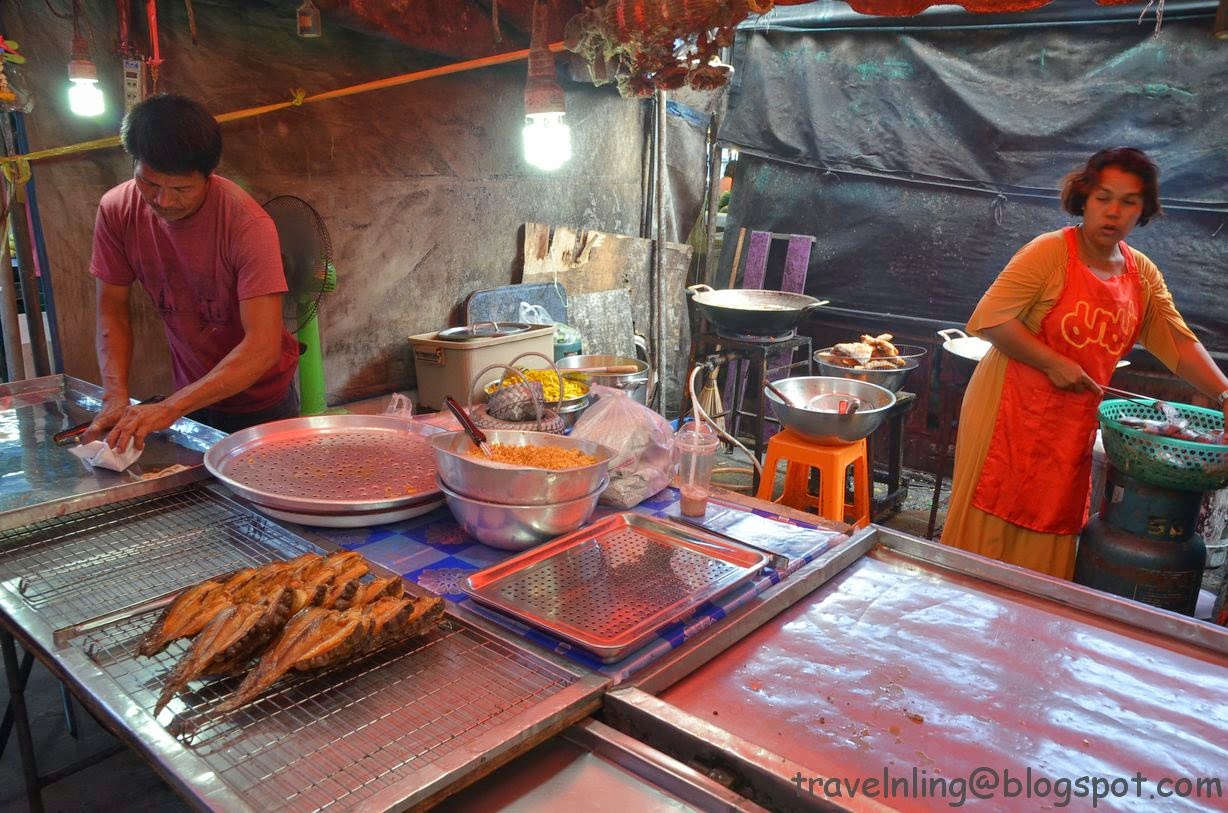 友人挑了一隻炸魚,也是因體型大小而價格有異,小隻30、大隻35泰銖。