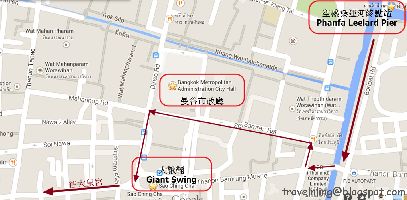 從剛剛的空盛桑運河終點站下船,走到了曼谷市政廳後,看見一個很高的支架,在附近的一片平房中,顯得特別醒目,原來是曼谷古著名地標「大鞦韆」(Giant Swing)。雖然是曼谷最古老、具有象徵性的地標,卻似乎很少人知道它的由來。