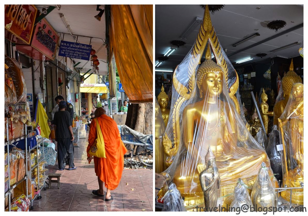 因為這區域有非常多佛寺,所以附近很多店家販賣著入寺拜拜用的相關商品以及佛像雕像。