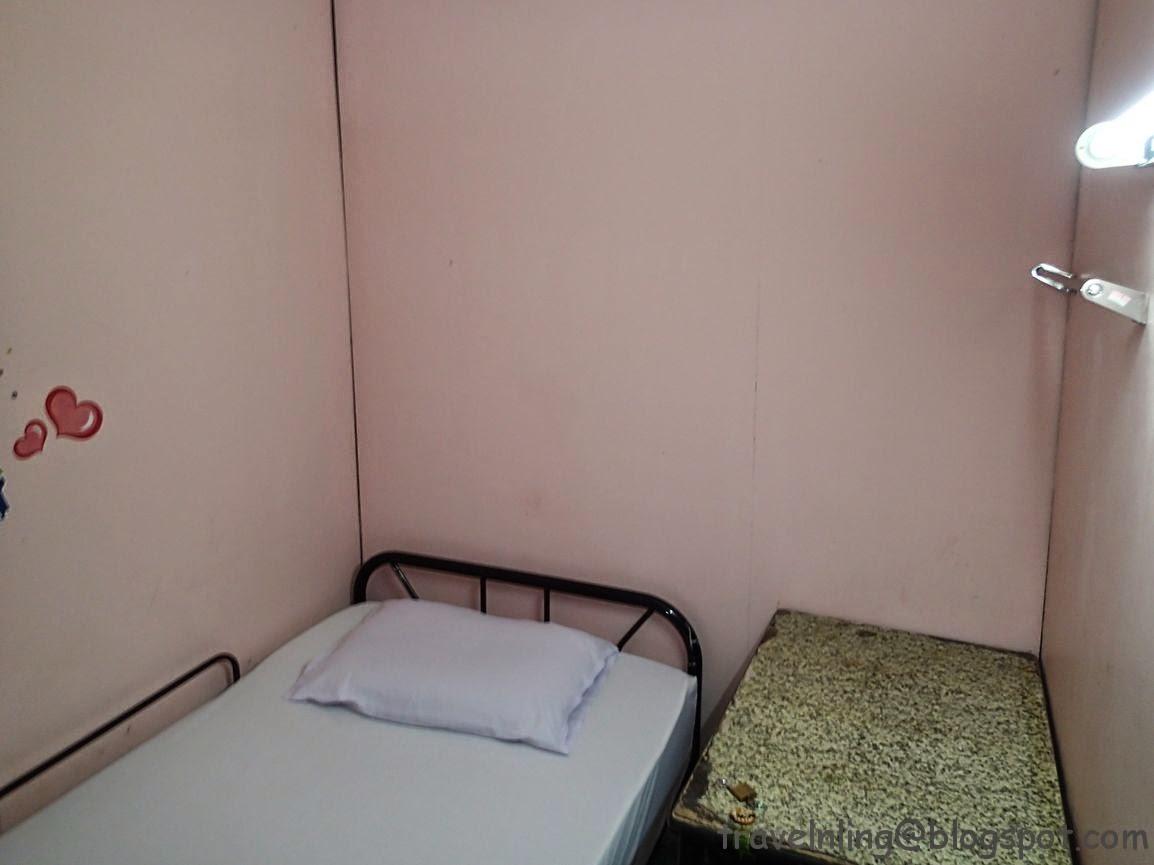 房內只一張單人床與一張舊桌併排就滿了,空間窄小。意外的是床上竟然沒有被單,因為打算只住一晚,所以沒去問櫃檯是忘了還是本來就沒有附。