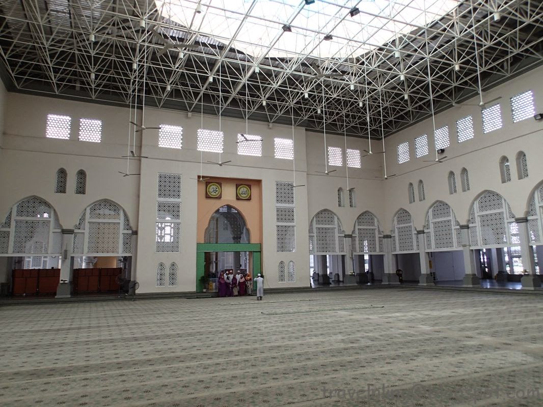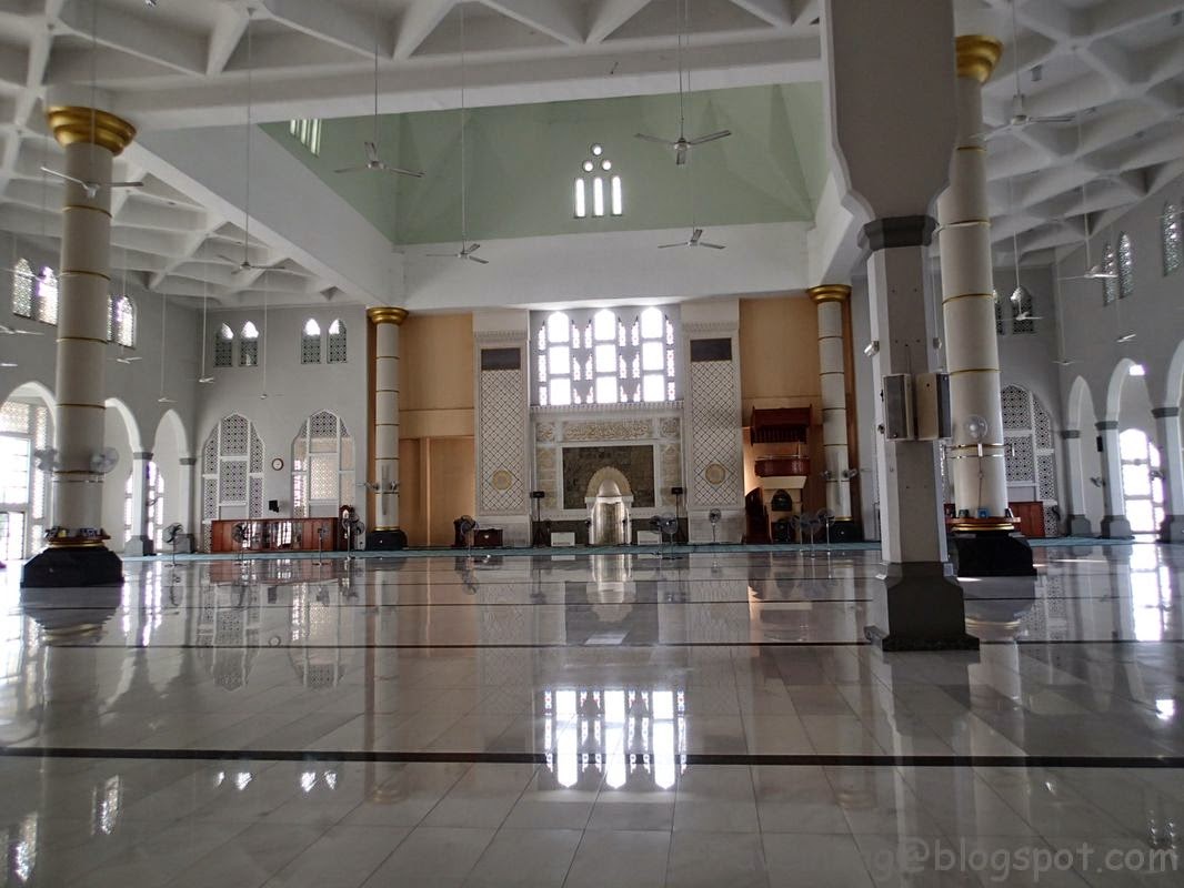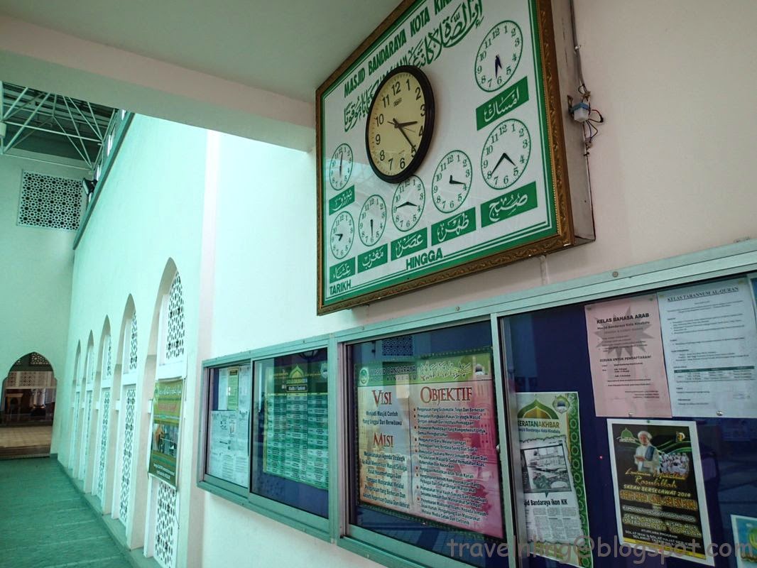 在亞庇市區有兩處清真寺,藍色「水上清真寺」(Likas Mosque)與金色「州立清真寺」(State Moqsue)。來過沙巴幾次,已經去過前者,但也只在外面欣賞建築物外部,原本想找機會逛逛逛後者,但與旅館人員閒聊時,她告訴我州立清真寺沒什麼,要看就去水上清真寺,遊客也可以換裝後入內參觀。於是決定再來水上清真寺,這次要換裝進去瞧瞧!