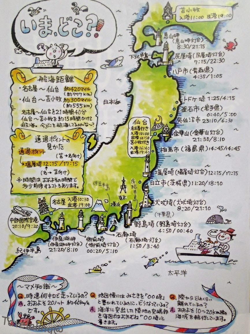 在日本搭船旅行是一個很特別的旅遊體驗。除了火車和飛機,從北海道到本州也可以搭船。經營從日本北海道搭船到宮城仙台這條航線的公司是「太平洋郵輪」(太平洋フェリー)。每日往來於苫小牧港與仙台港之間。船會沿著日本東太平洋岸保持十至二十公里的距離航行,以大約四十公里的時速往南航行,途經東北的青森、秋田與宮城縣,不論是在船上望著海景邊泡澡(展望大浴場)或是欣賞海上日出,都是非常令人難忘的特殊體驗。